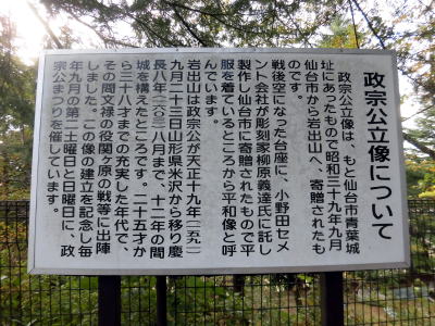 政宗が慶長八年(1,603)仙台の青葉城に移るまで、十二年間居城した。