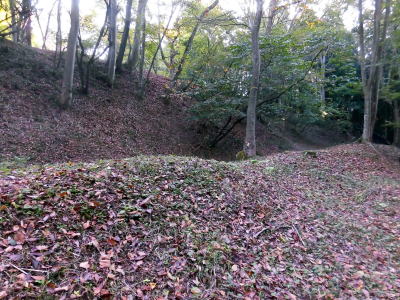 登城口から入るといきなり見事な空堀が現れる