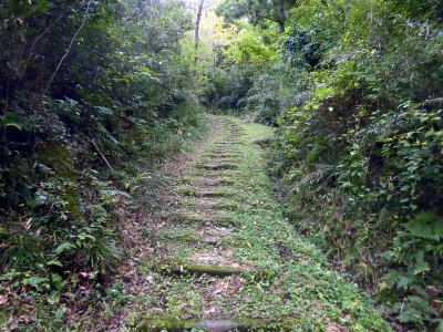 城の大手道にあたり、もう少し下ると大手登城口がある~