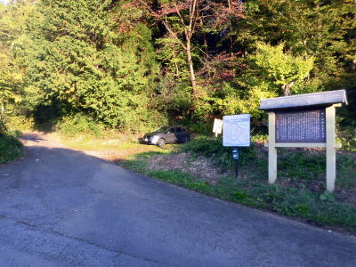 ~説明版脇のスペースに駐車し、矢印方向へ1分ほど歩くと