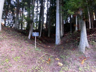及ぶ大型の城郭が構えられ、東西130㍍南北100㍍ほどの長方形平場が本丸で、東、南、西の3面に土塁、その外側に空壕を築き、二重の