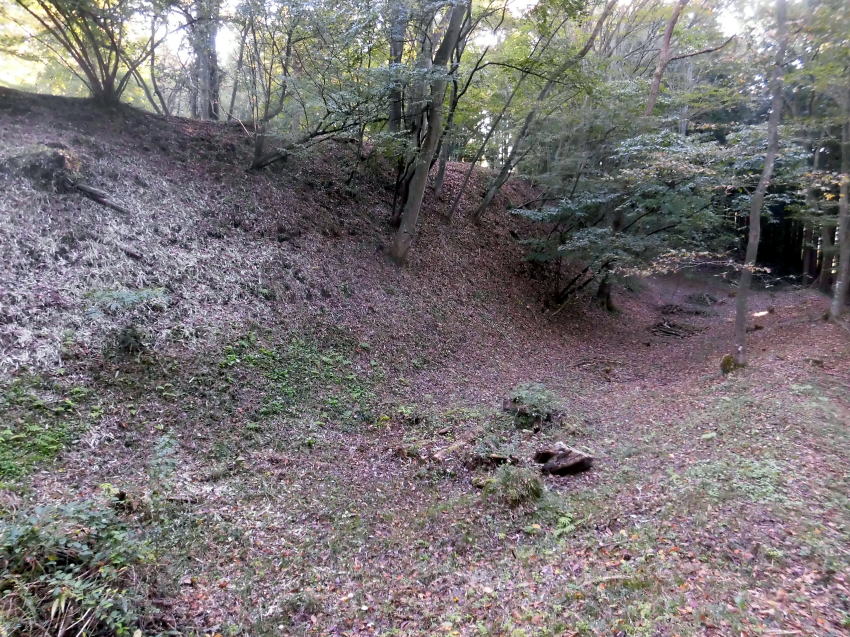 登城口から入るといきなり見事な空堀が現れる