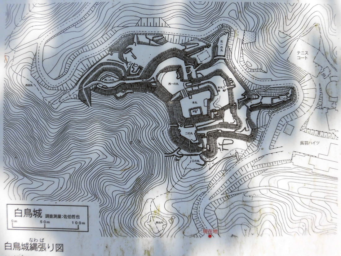 現在、秀吉本営の白鳥城の遺構はほとんど失われたが、昭和56年からの発掘調査によれば、本丸は空堀で囲まれ、周囲からはいくつかの